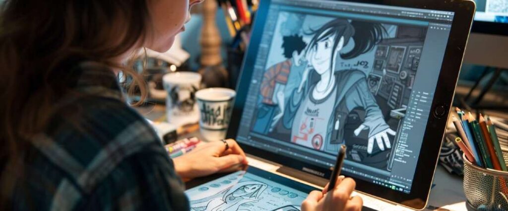 - Specialized tools for comic and manga creation, including panel layout and speech bubbles